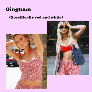 Gingham is definitely geared to a specific auduience. This is probalaly my least favorite trend out of all of these. Very country. Which is another thing we see trending this summer. Gingham anything. Bows, tops, bottoms. Especially red. We saw red was a big summer color last summer and all last season, and it’s still pretty huge.