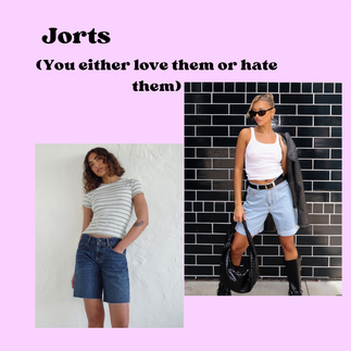 Jorts are surely interesting… It’s obviously a mix of jeans and shorts, stopping at about right above your knee. It’s trending a lot this summer, and to be honest, I haven’t seen Jorts trend in awhile. I’ve seen a lot on models like Bella Hadid and Kendall Jenner. Of course you could wear this with anything and have any body type to, but it definitely looks good on someone who is taller. I know I don’t look good in Jorts, and I’m 5’4 and mid sized, with bigger hips. This certainly looks best on a straight body type in my opinion, but of course, wear whatever you want! I’d pair Jorts with a crop top, or Tshirt. Maybe some boots, flip flops, or kitten heels. Another trend that looks intimidating, but really isn’t. (Also, shout out to hot pants. they’re also trending and a great one for my short girlies.)